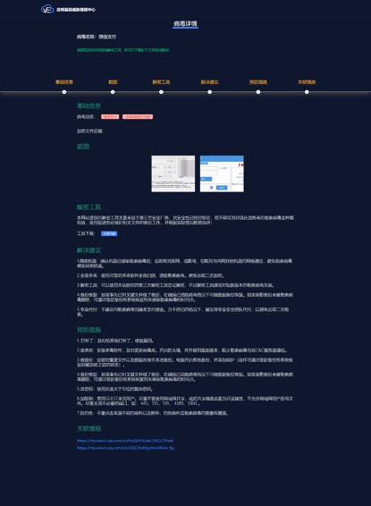 为了帮助大家找到一个恢复数据的解决方案,而不需要向勒索软件的创建者支付赎金,我们收集并整理了大量的勒索软件解密工具,可在启明星辰集团VenusEye威胁情报中心的勒索病毒专题https://lesuo.venuseye.com.cn