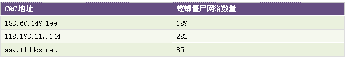 我们对这三个黑雀C&C地址相关联的螳螂C&C做了分类统计,如下表所示: