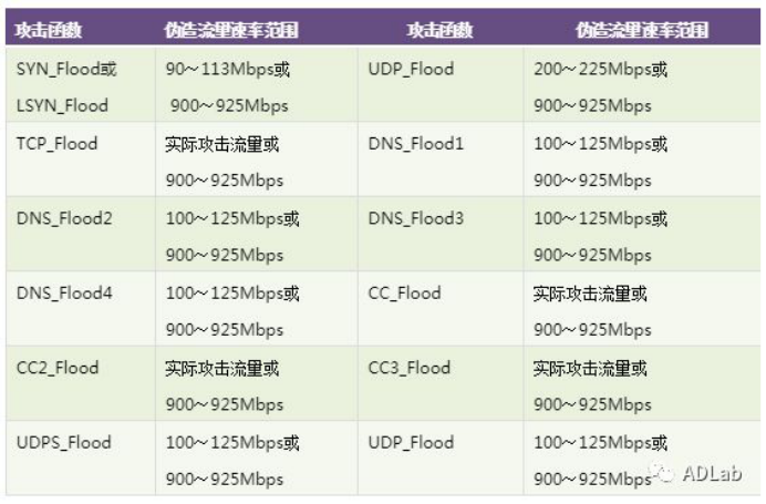 僵尸程序伪造的攻击流量数据范围如下表所示