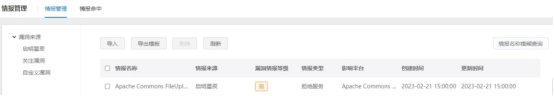 通过分析规则自动将Apache Commons FileUpload拒绝服务利用的可疑行为源地址添加到观察列表“高风险连接”中,作为内部情报数据使用;